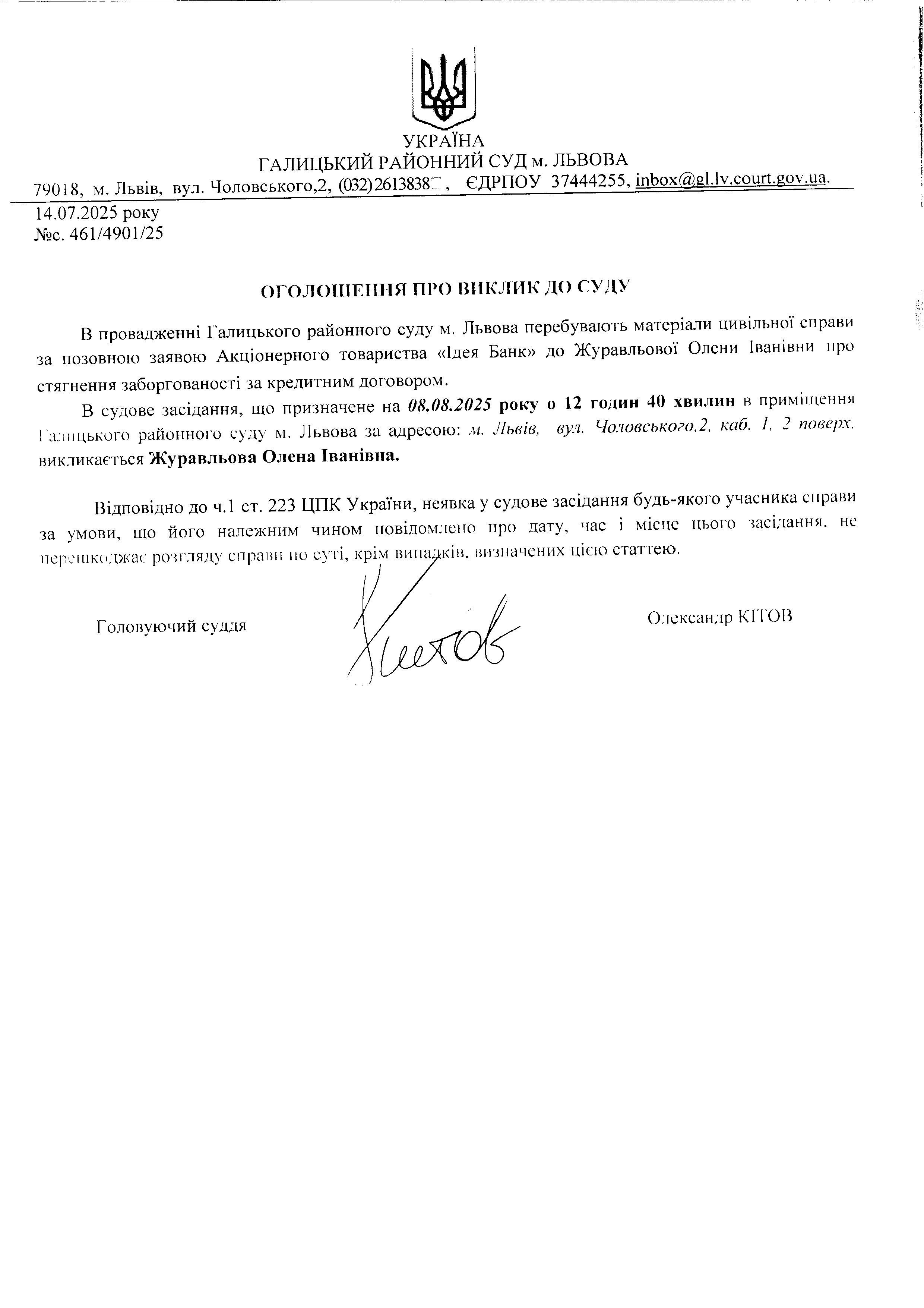 оголошення про виклик Журавльова О.І.