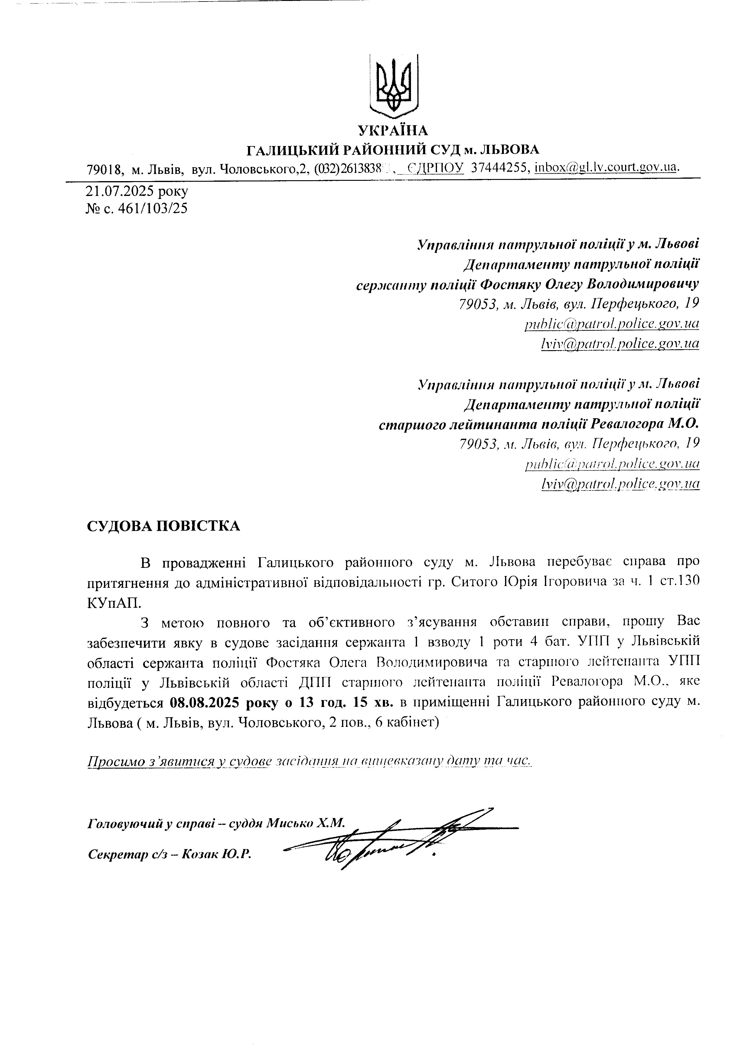 оголошення про виклик Ситого Ю.І.