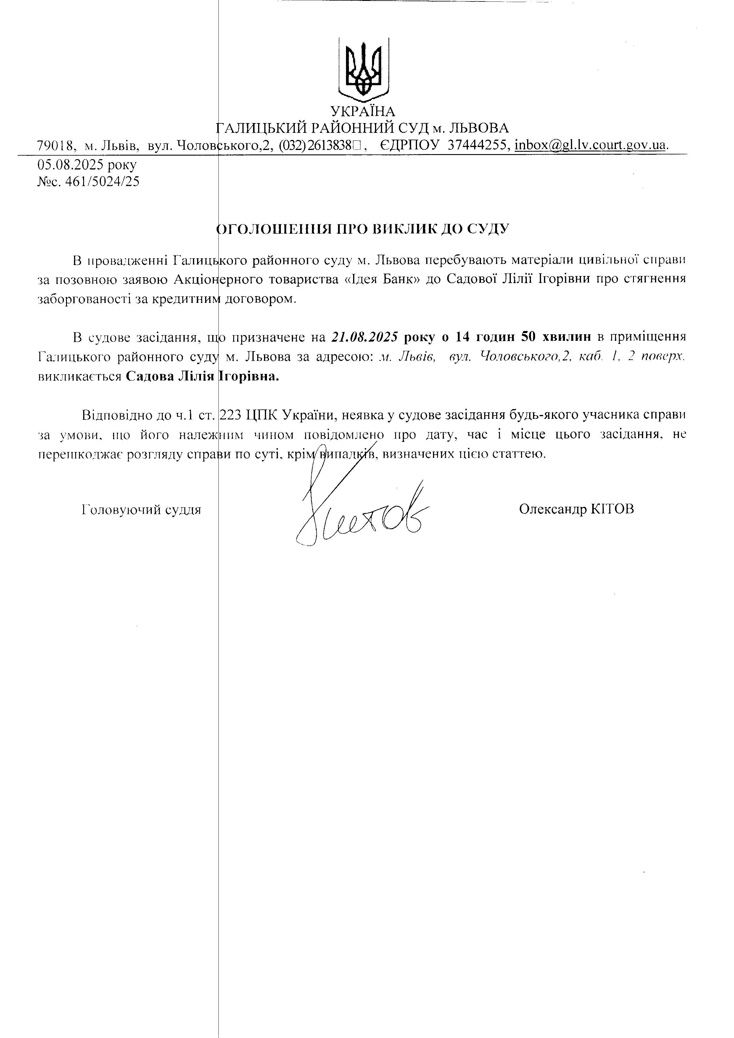 Єдиний Контакт-центр судової влади України 044 207-35-46