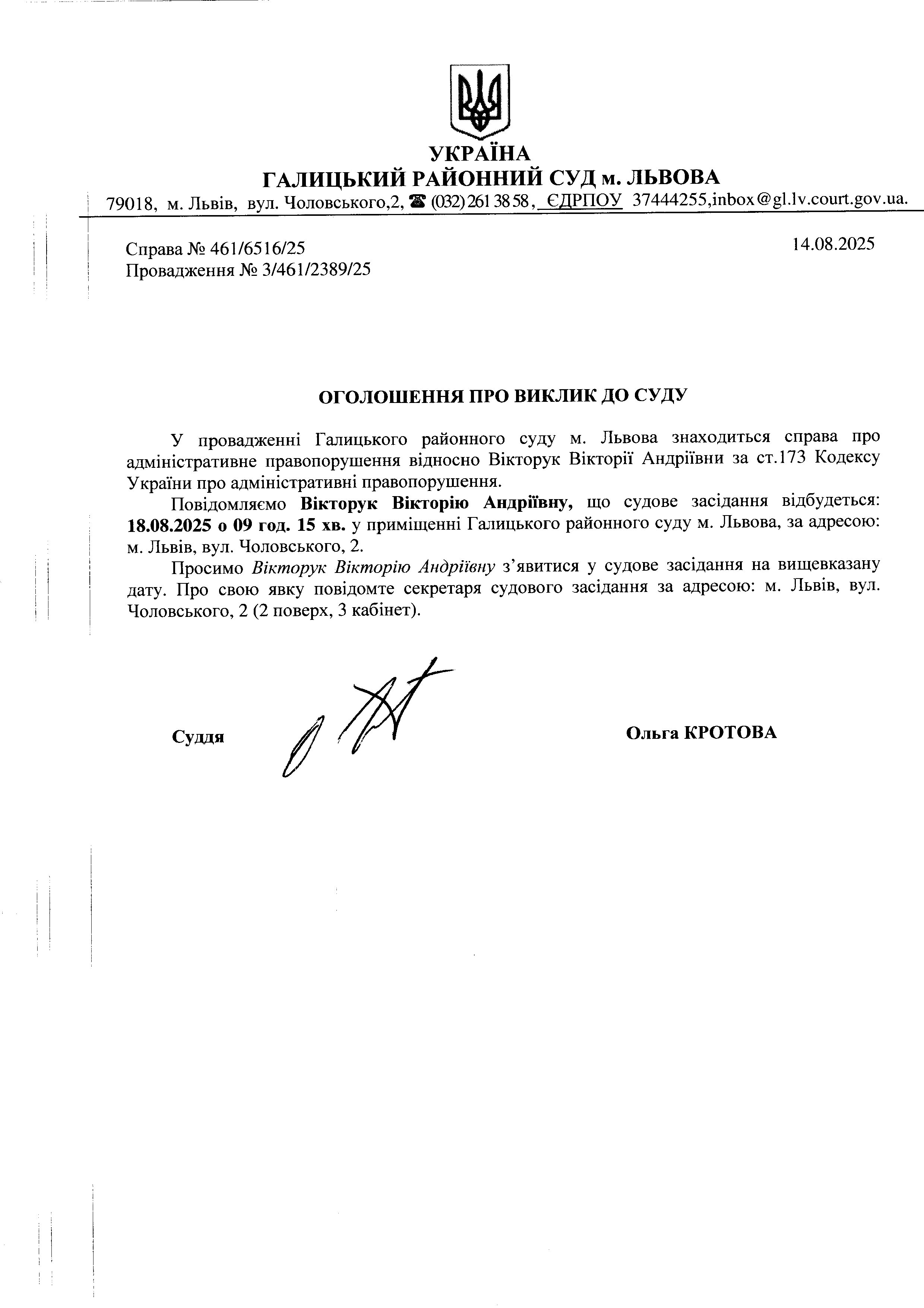 оголошення про виклик Вікторук В.А.