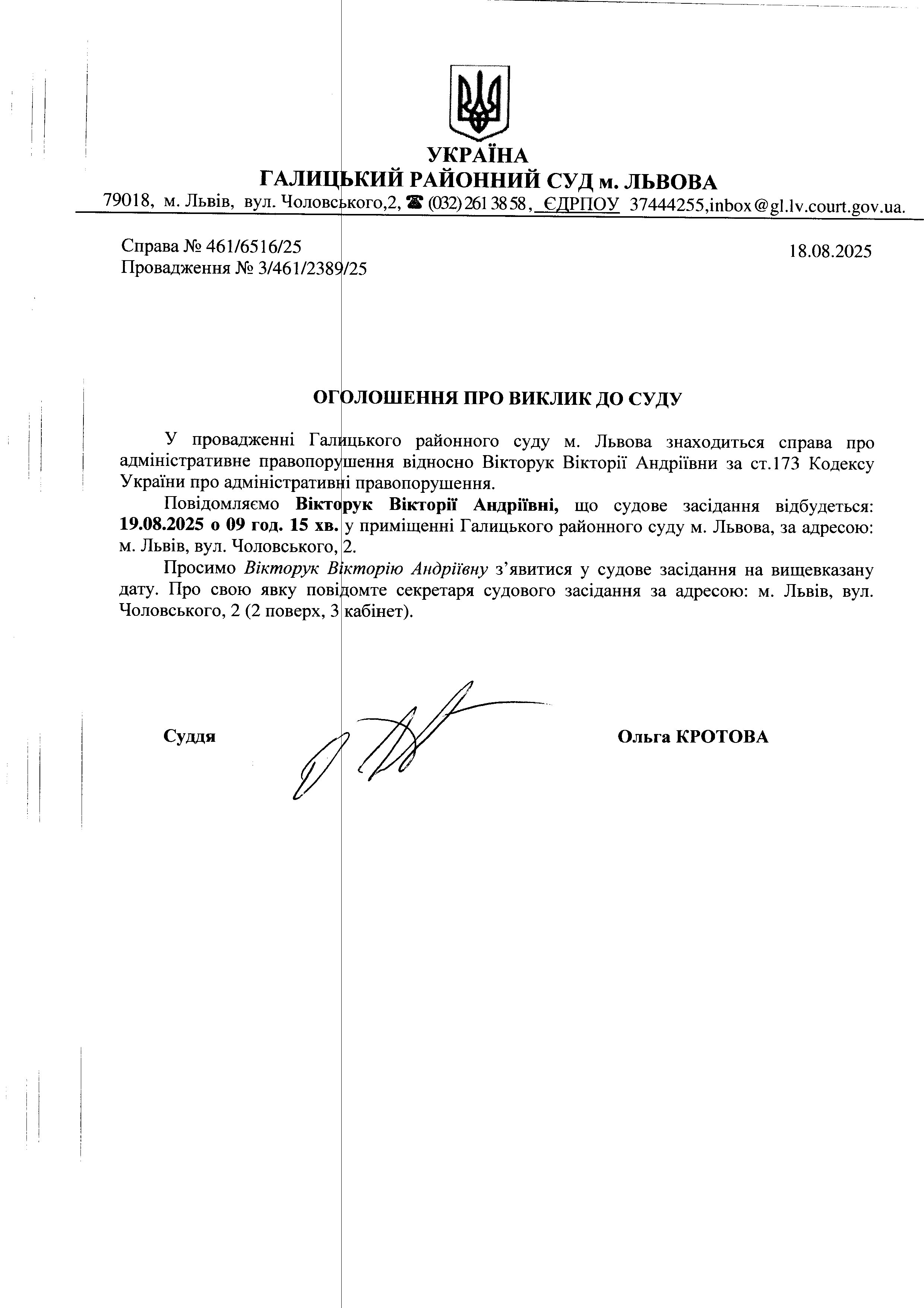 оголошення про виклик Вікторук В.А.