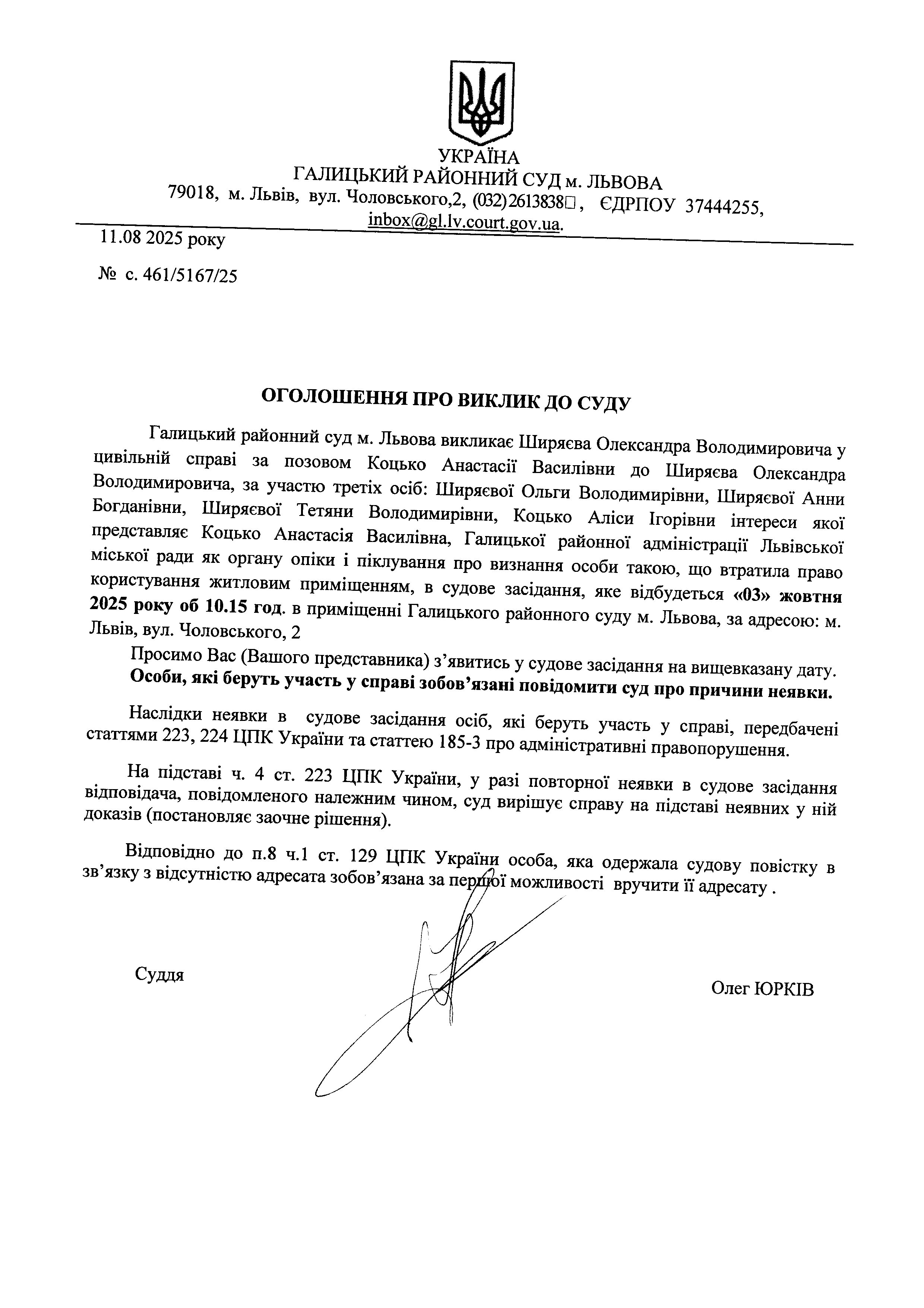 оголошення про виклик Шираєва О.В.