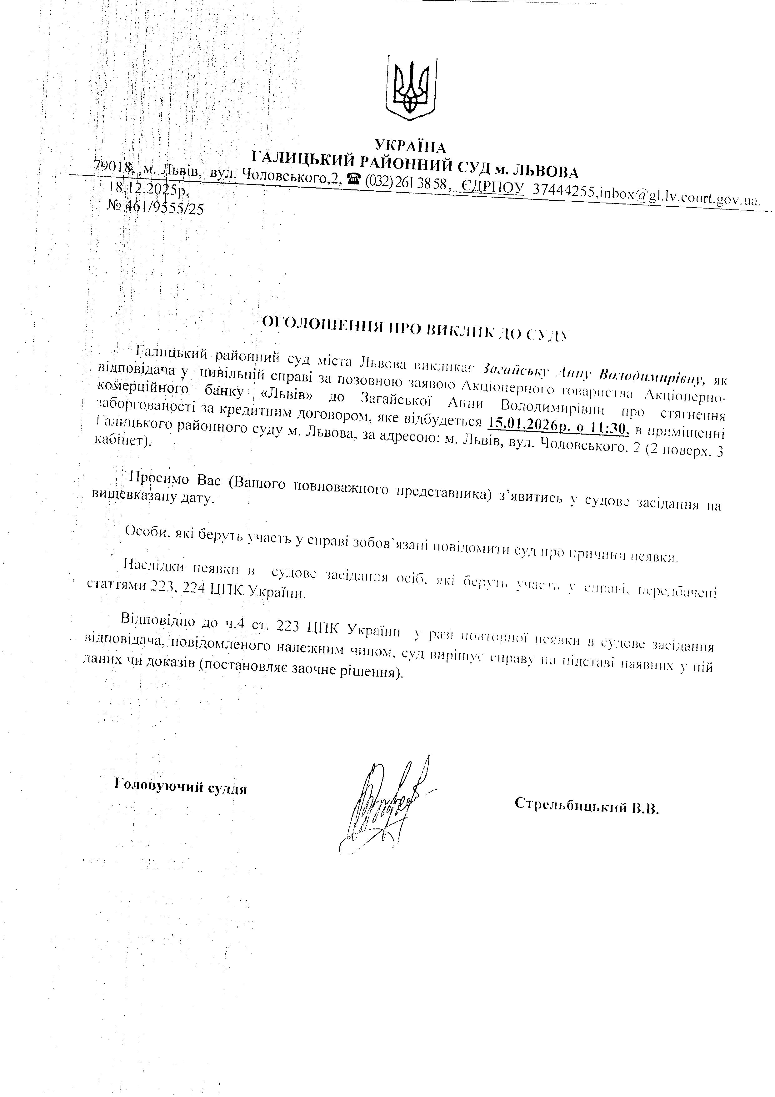 оголошення про виклик Загайської А.В.