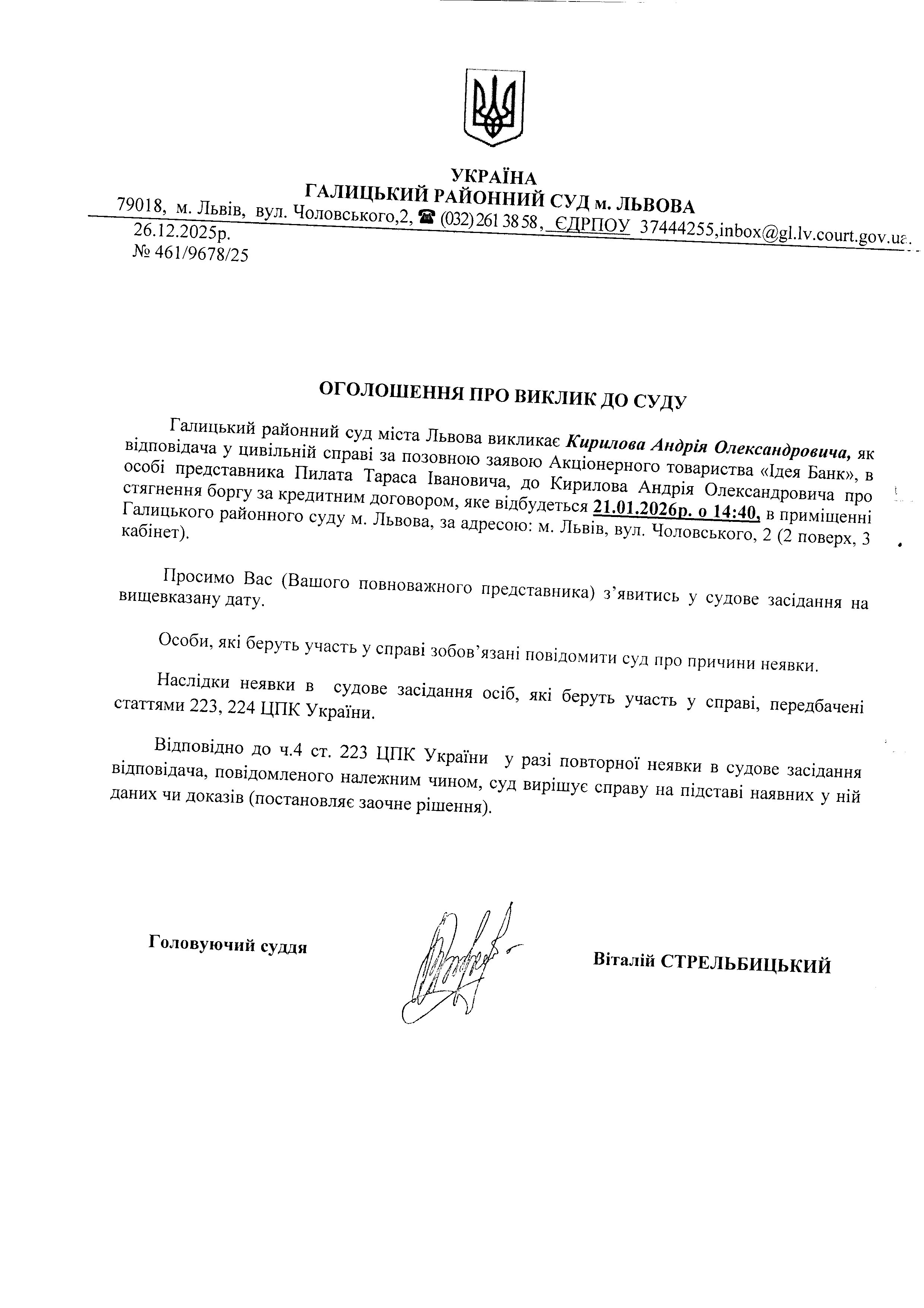 оголошення про виклик Кирилова А.О.
