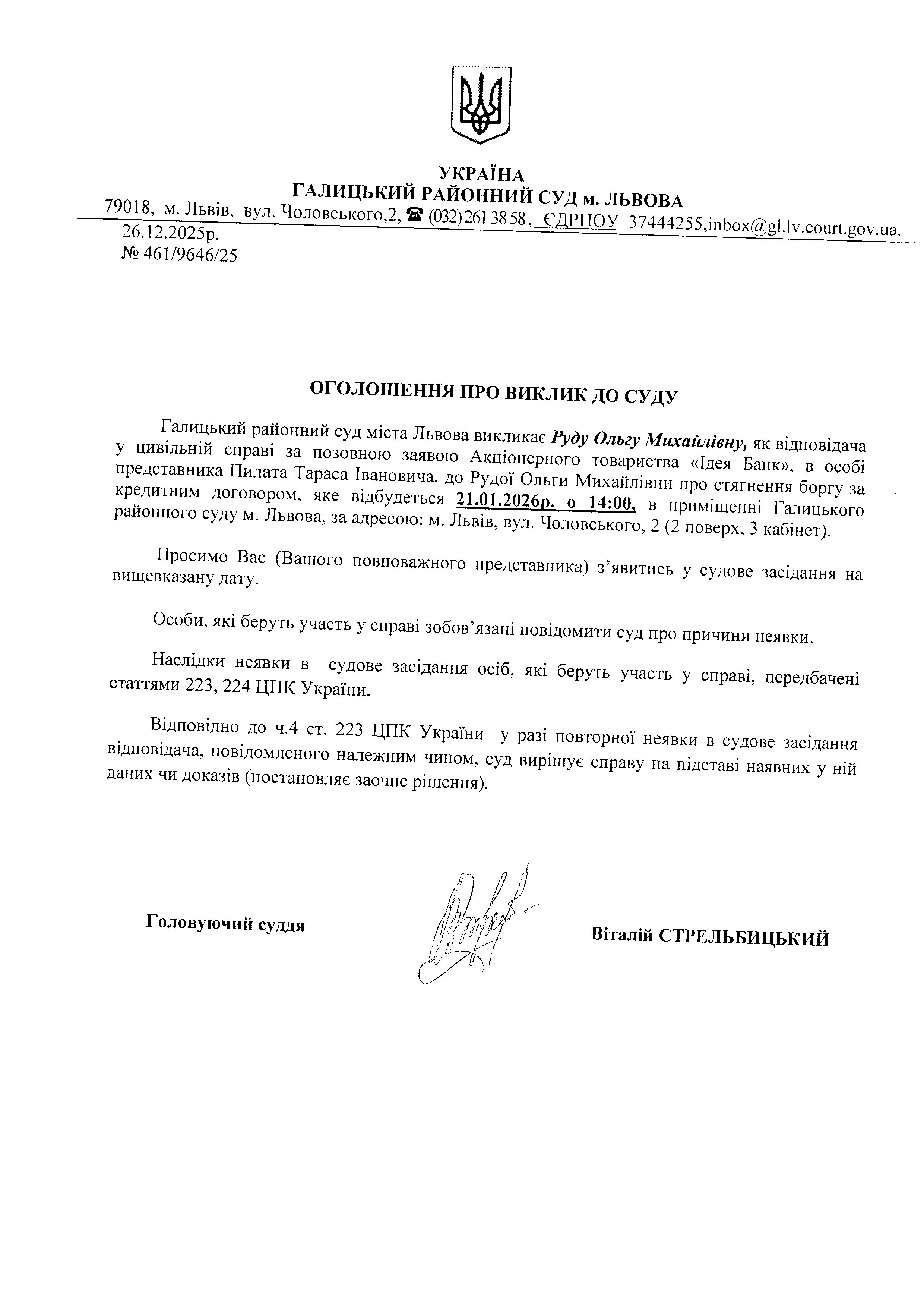оголошення про виклик Руду О.М.