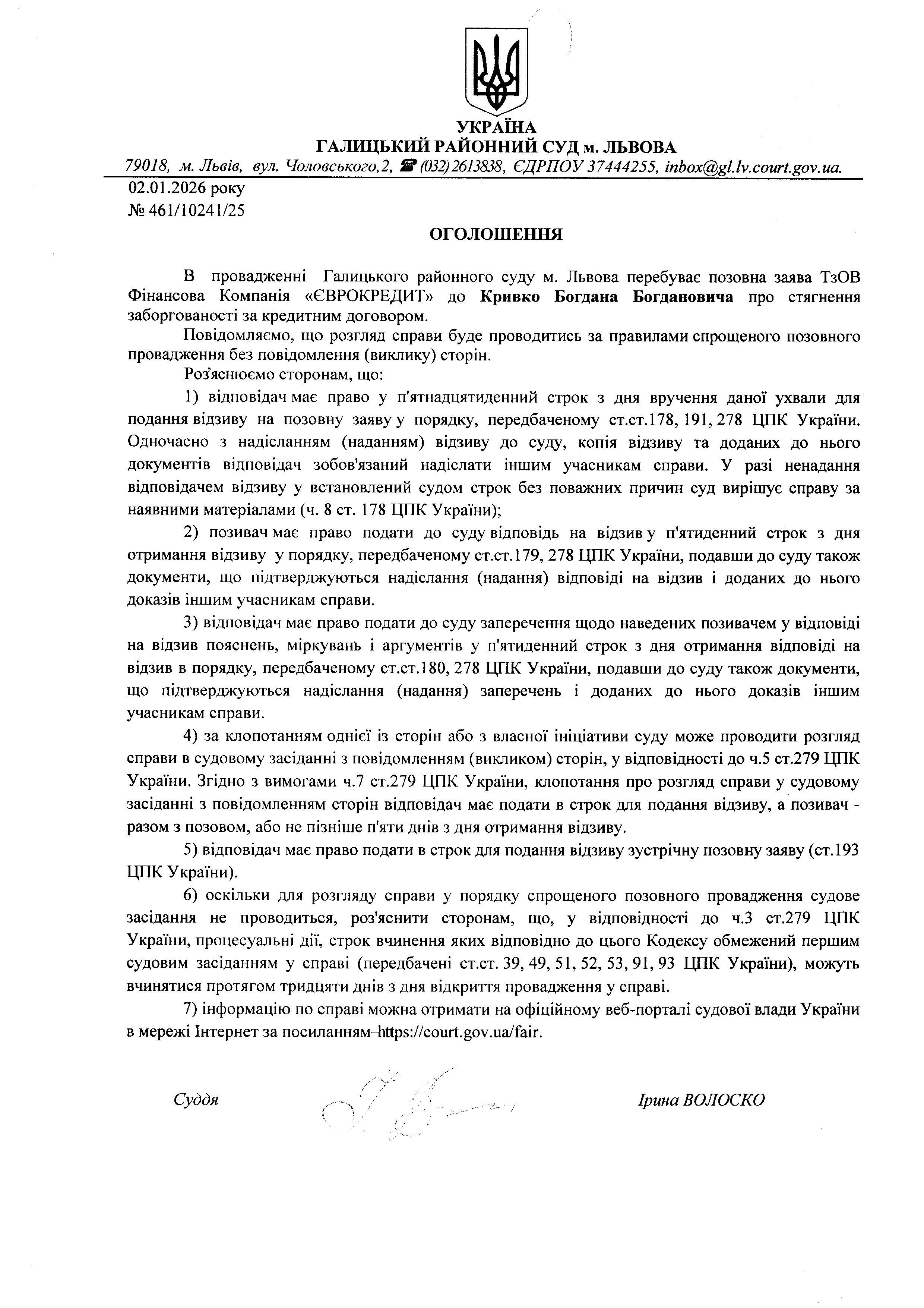 оголошення про виклик Кривко Б.Б.