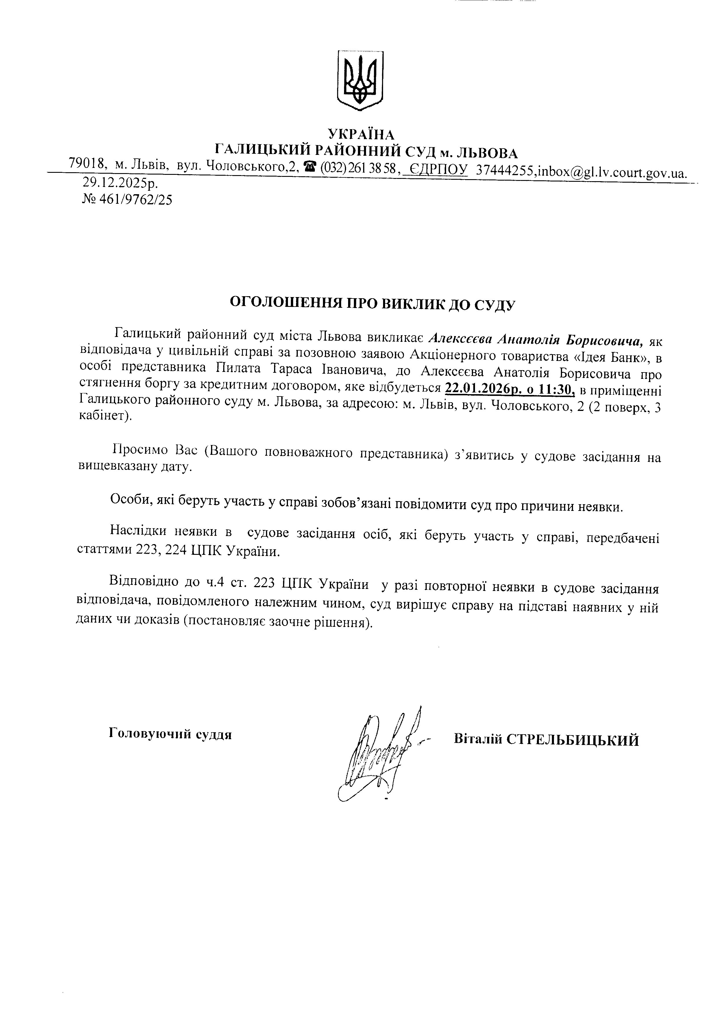 оголошення про виклик Алексєєва А.Б.