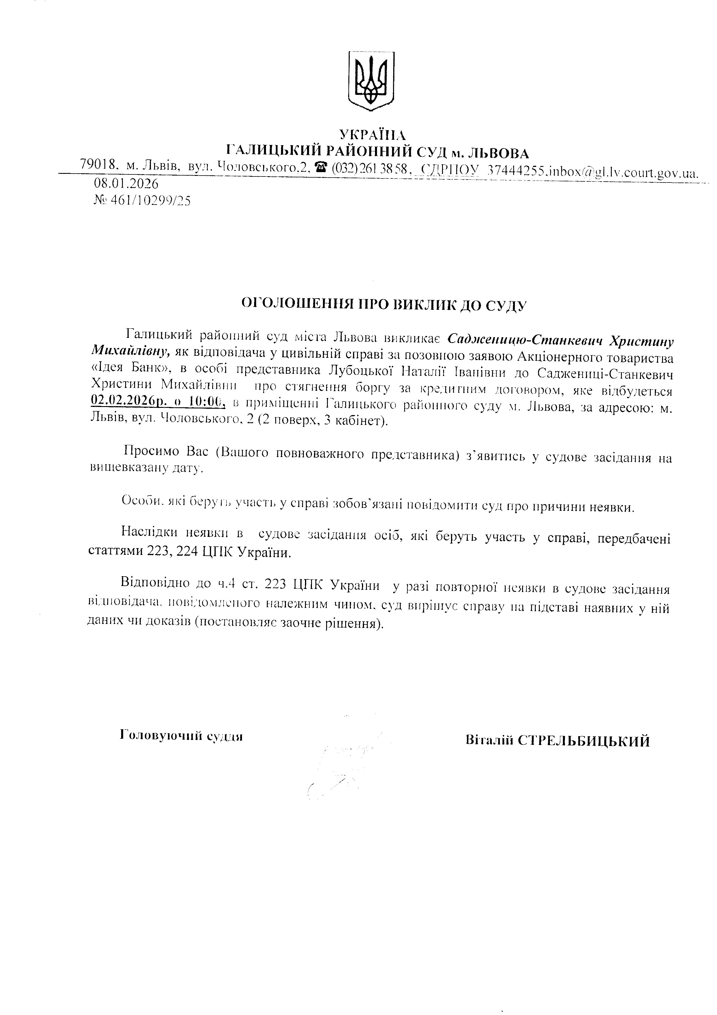 Оголошення про виклик до суду