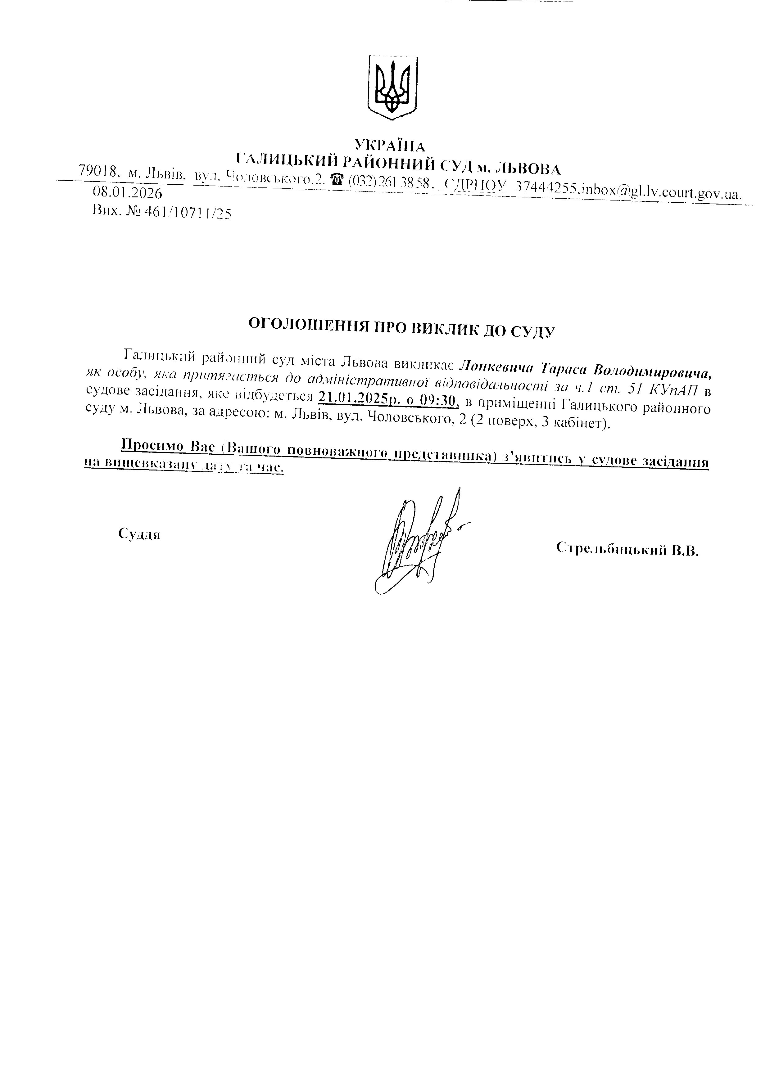 оголошення про виклик Лонкевича Т.В.