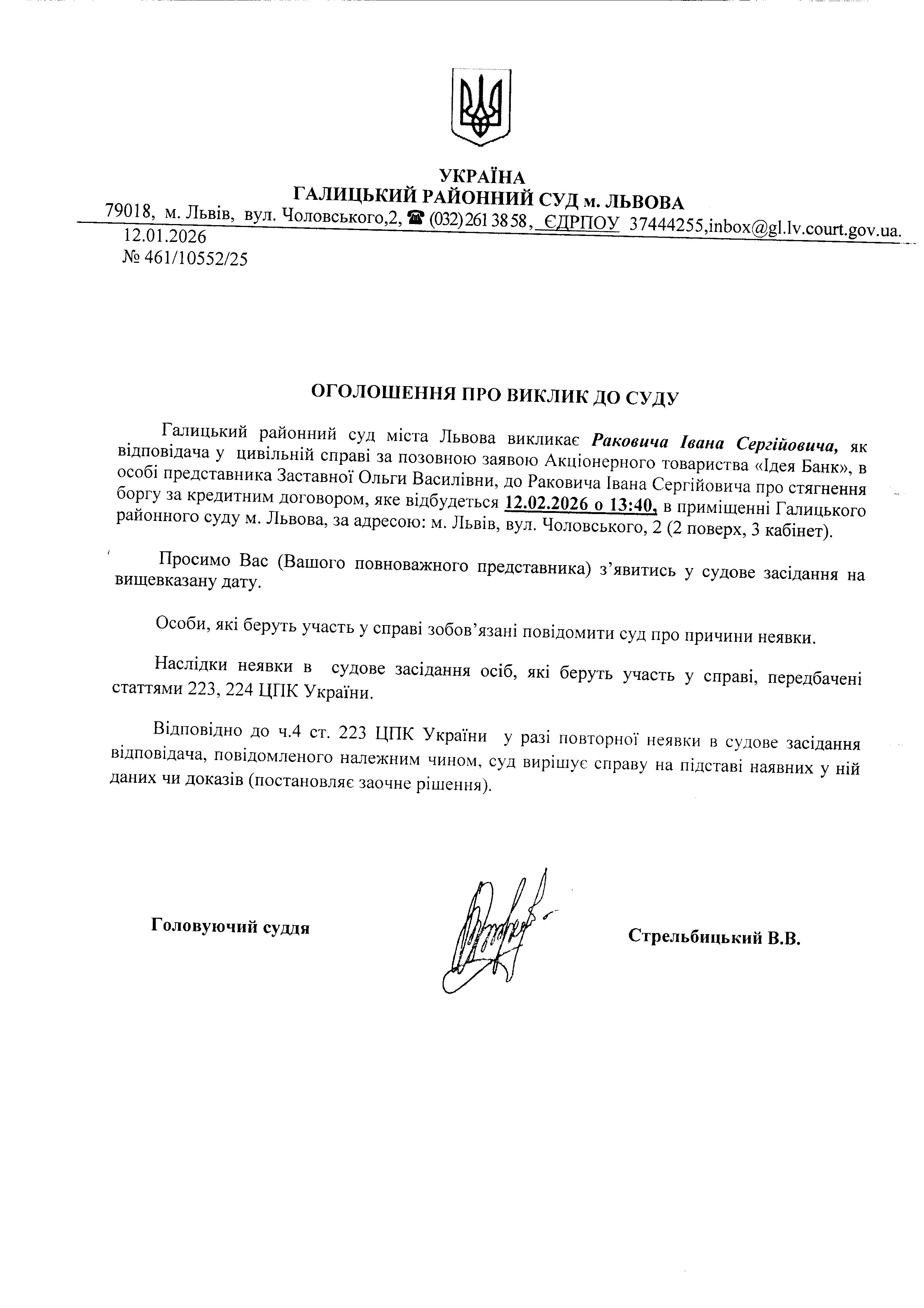 оголошення про виклик Раковичча І.С.