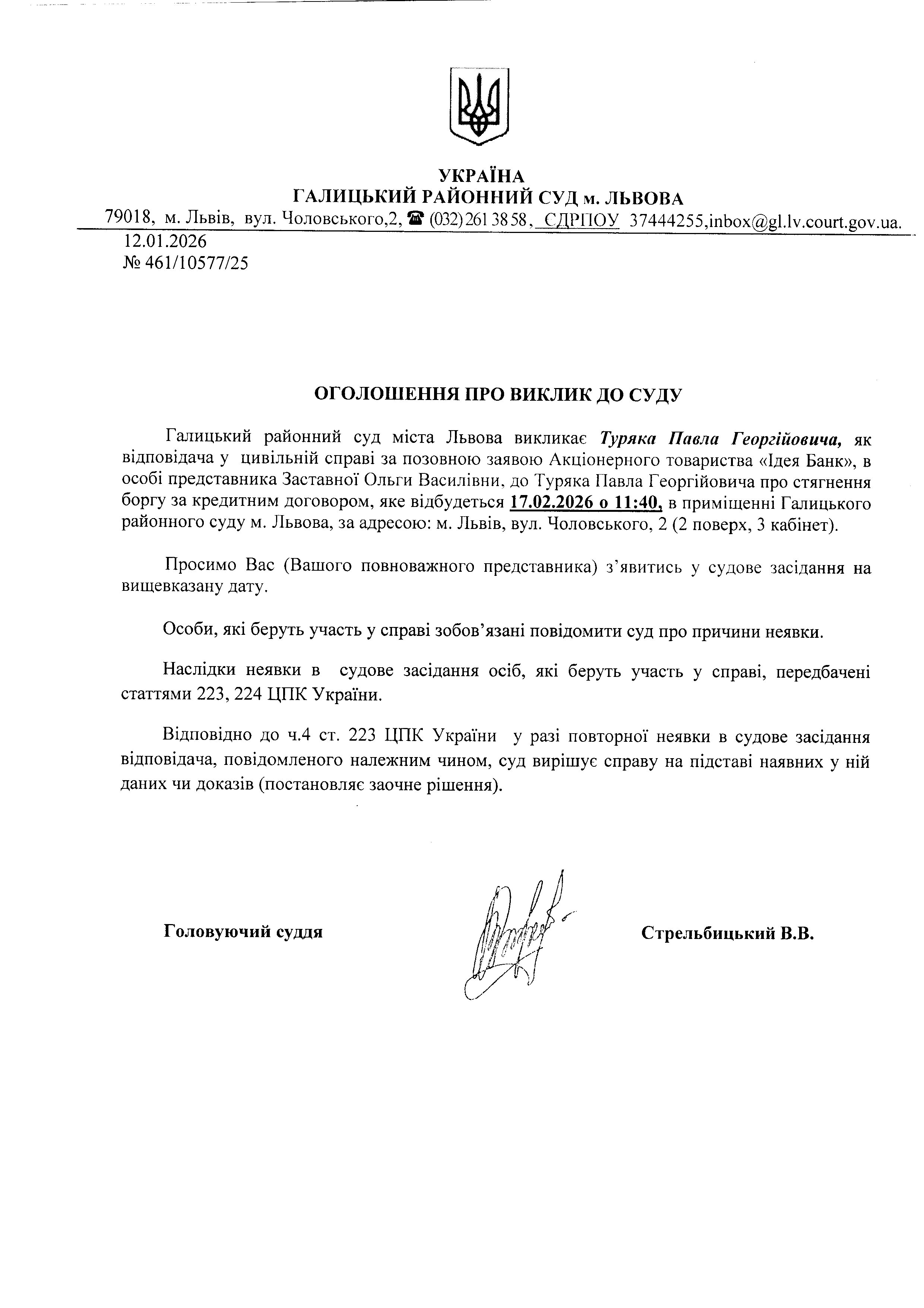 оголошення про виклик Туряка А.Г.
