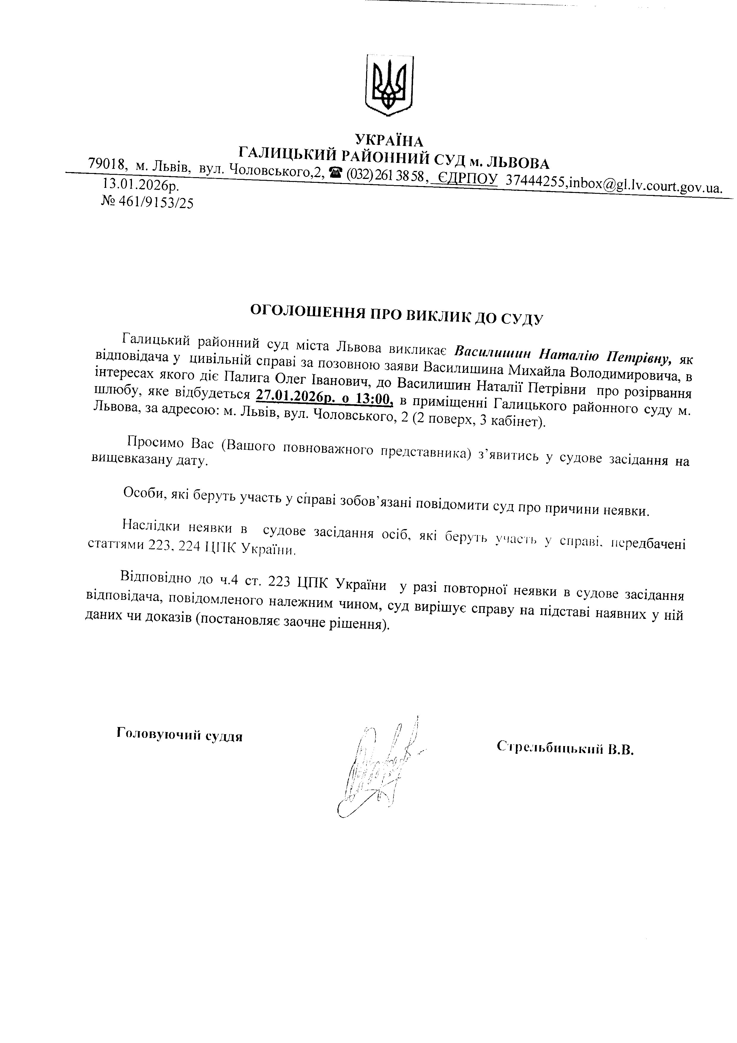 оголошення про виклик Василишин Н.П