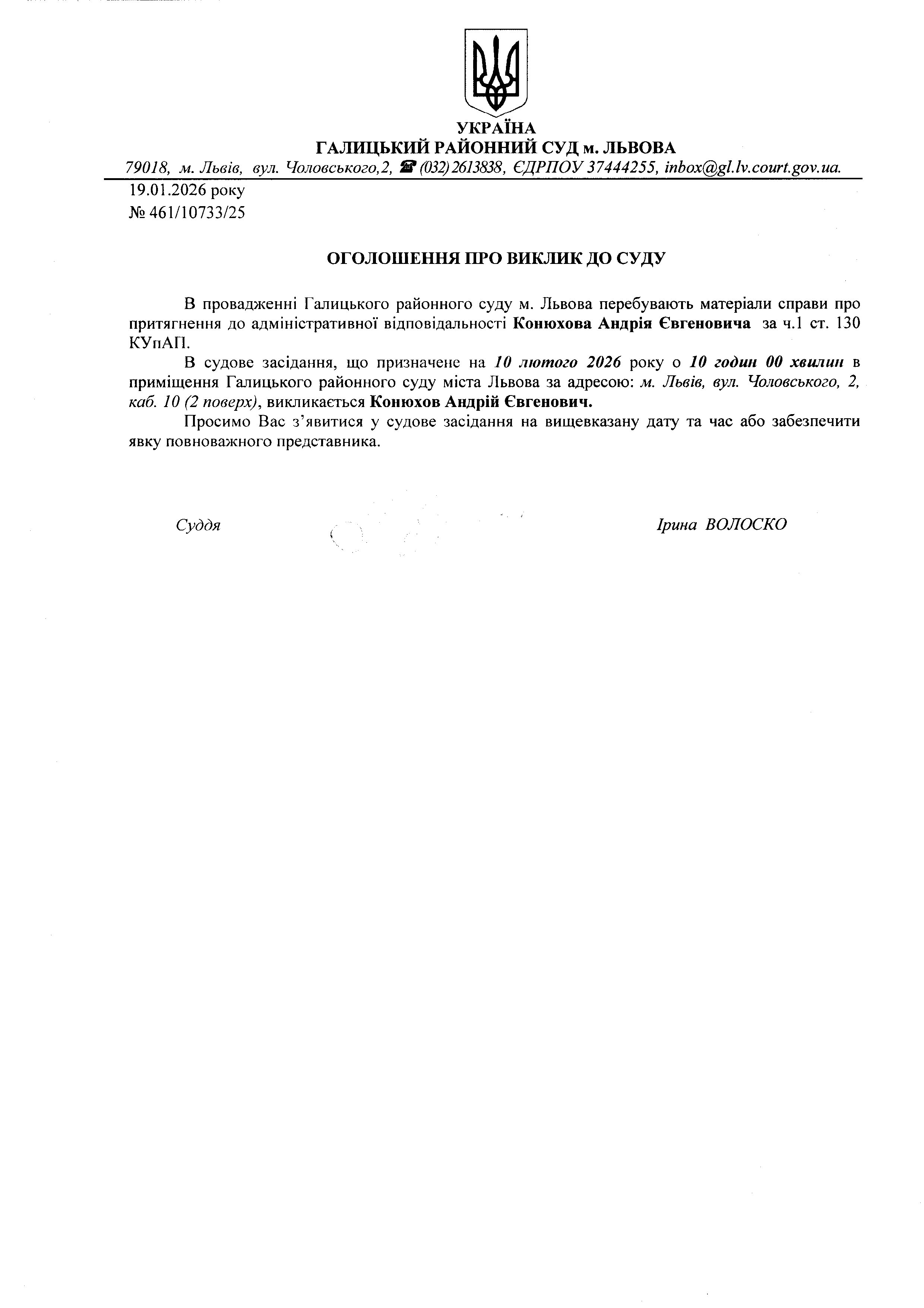 оголошення про виклик Конюхова А.Є.