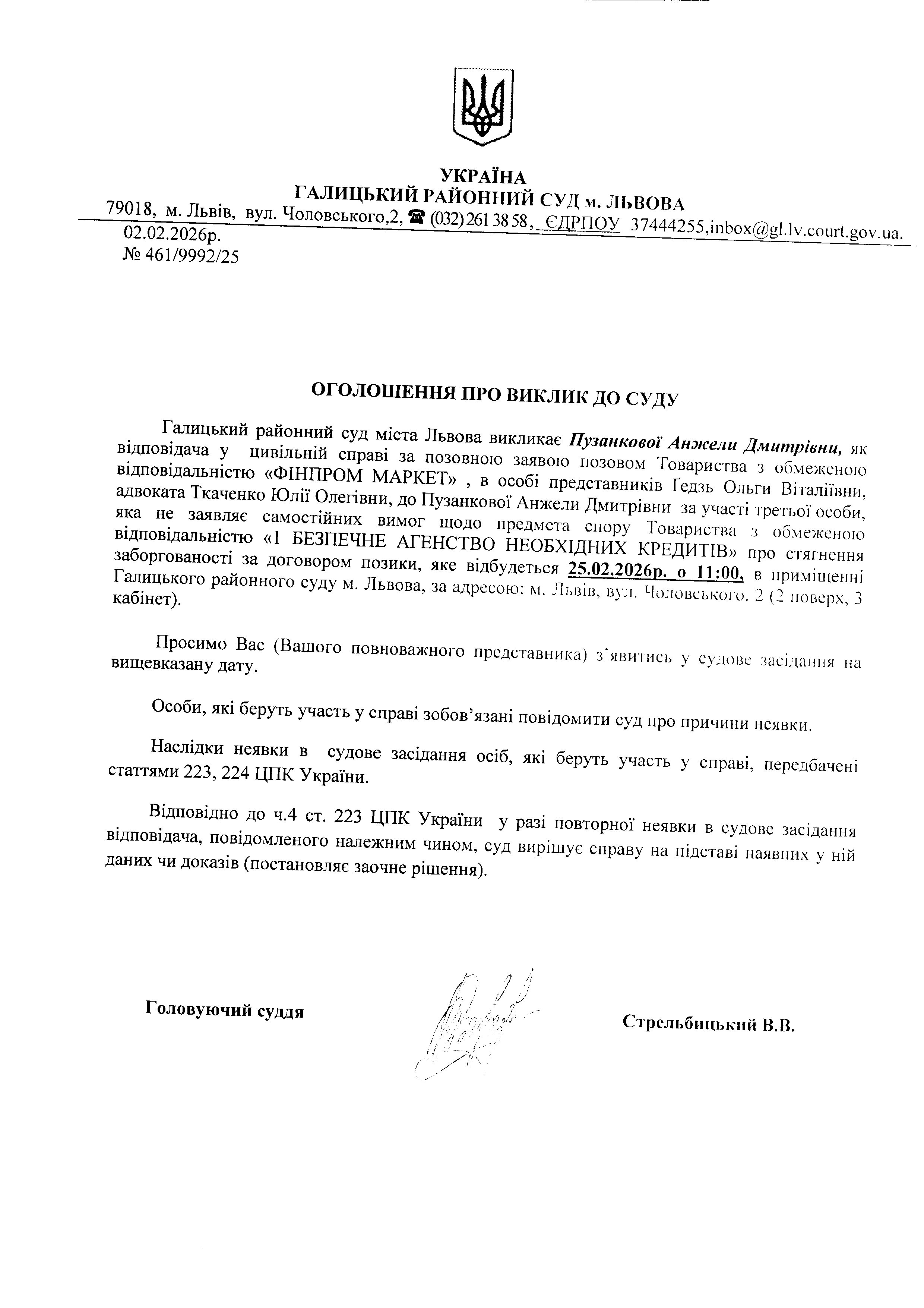 оголошення про виклик Пузанкової А.Д.