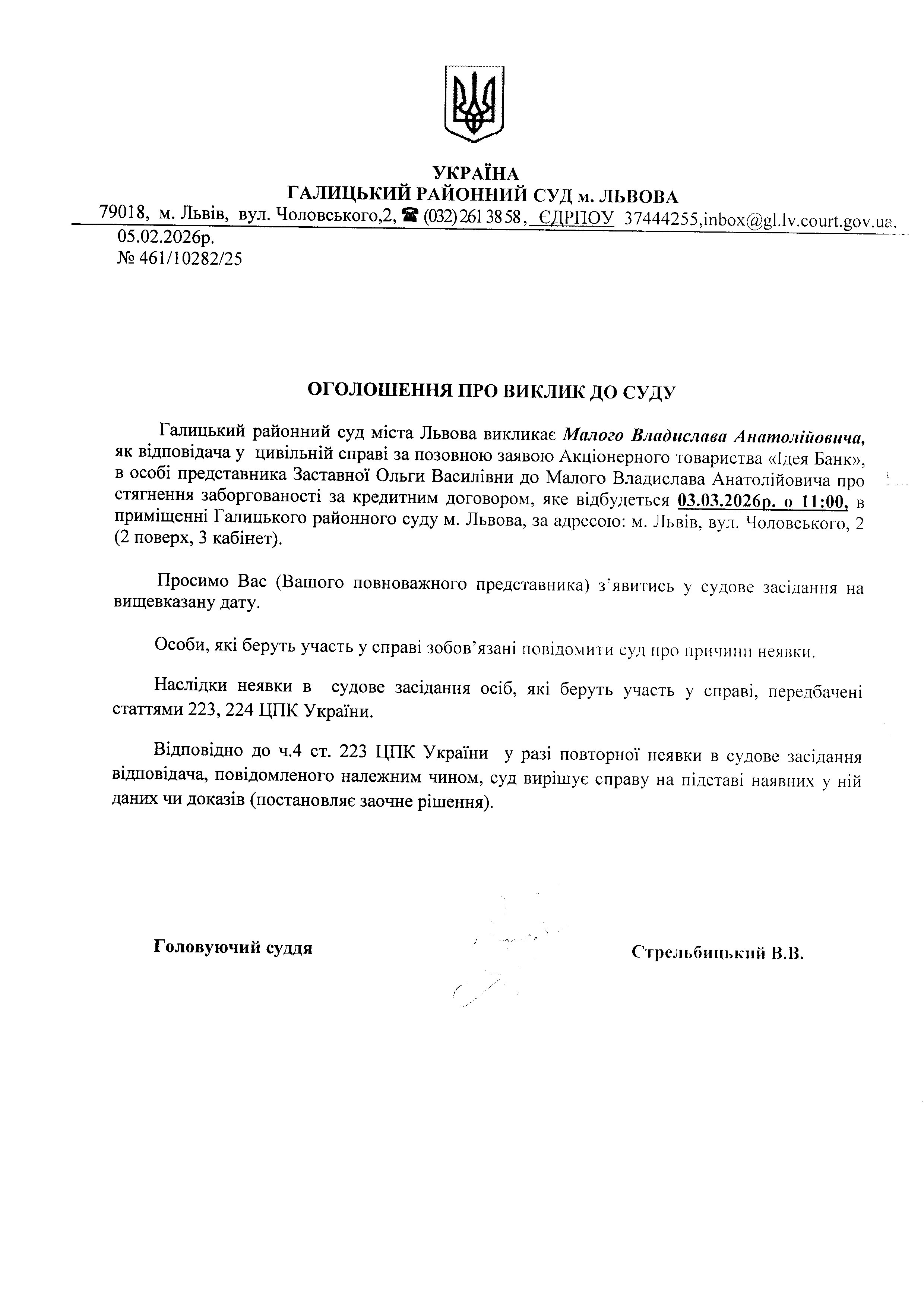 Оголошення про виклик до суду