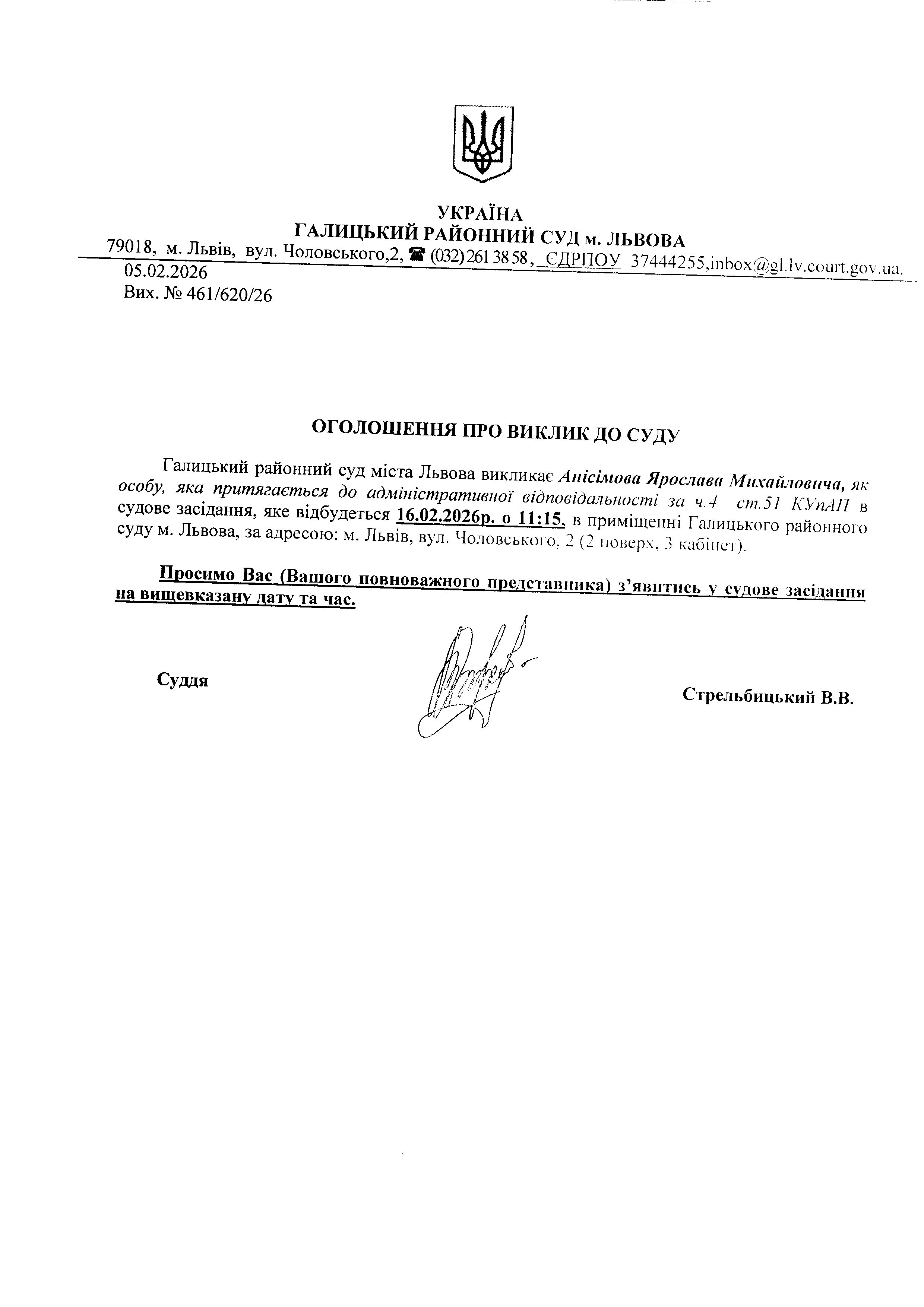 Оголошення про виклик до суду Анісімова Я.М.