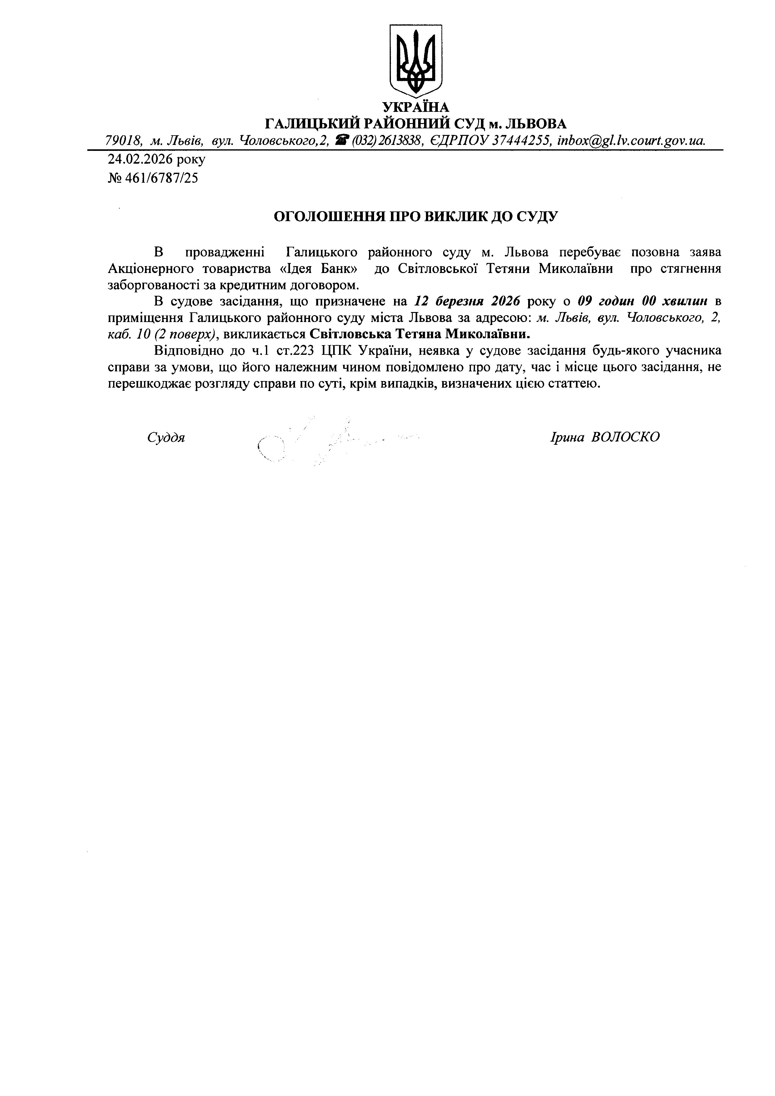 Оголошення про виклик до суду