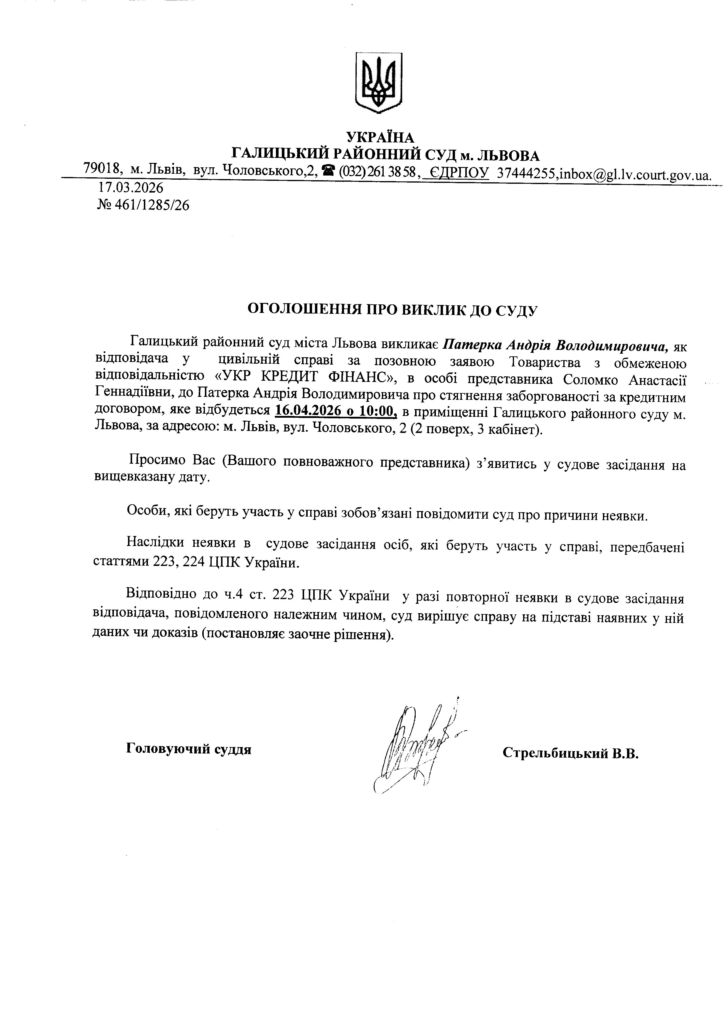 Оголошення про виклик до суду