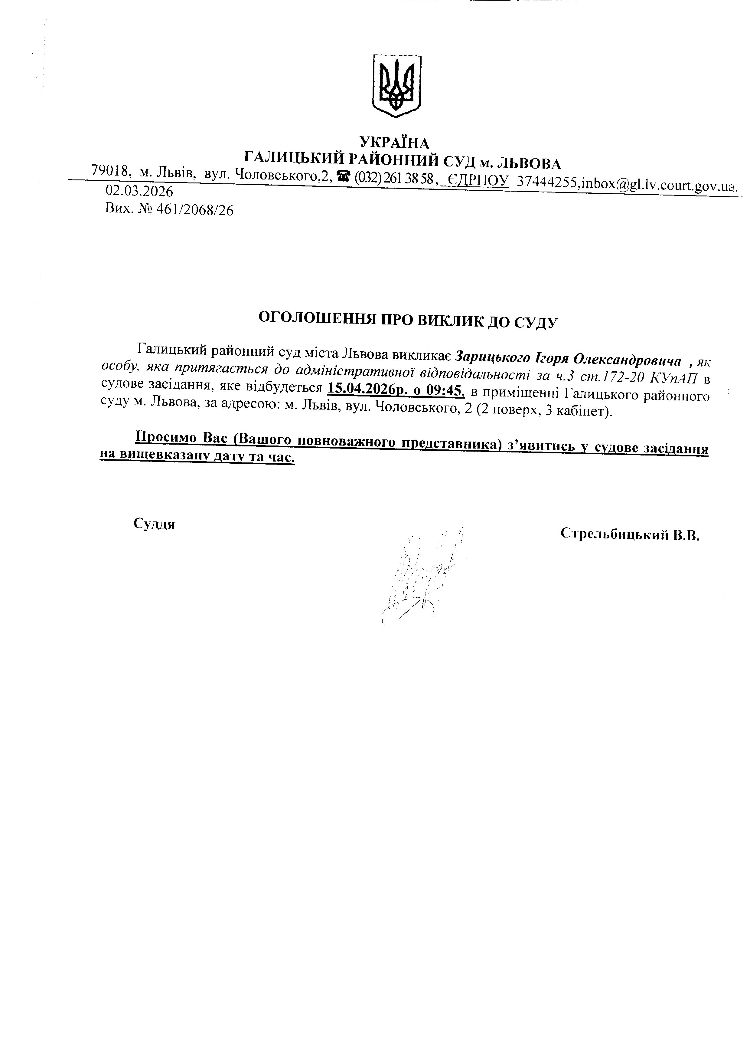 Оголошення про виклик до суду