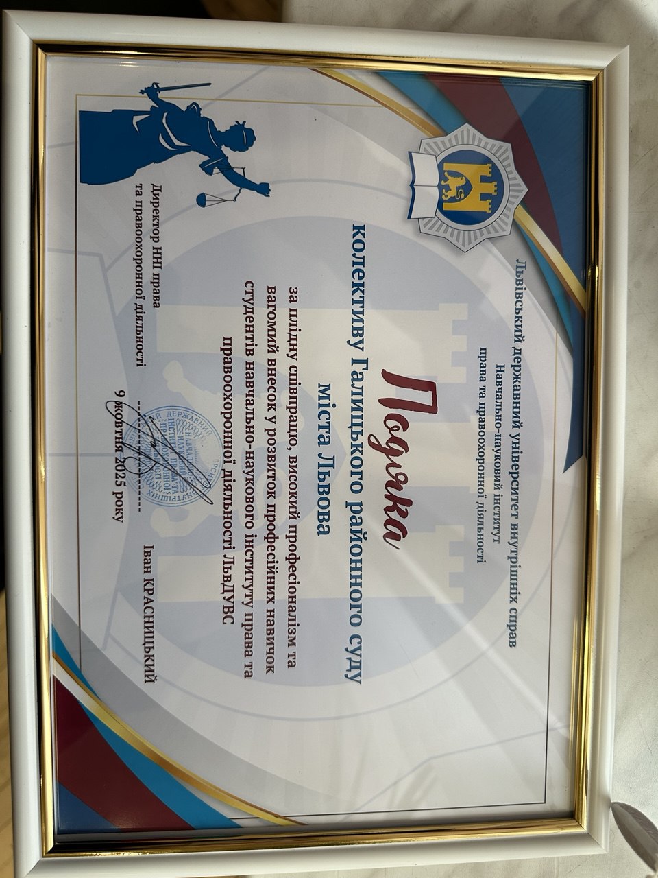 Директор Навчально-наукового інституту права та правоохоронної діяльності ЛьвДУВС висловив щиру подяку колективу суду за плідну співпрацю, високий професіоналізм та вагомий внесок у розвиток практичних навичок студентів. Такі ініціативи сприяють не лише формуванню глибших професійних знань, а й вихованню поваги до інститутів правосуддя в українському суспільстві.